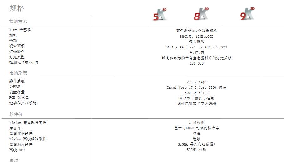 VI  5K 3D AOI 光學(xué)檢測機(jī)參數(shù)